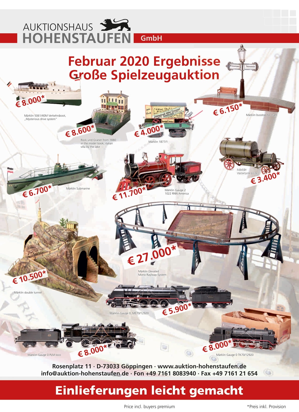 Herzlich Willkommen im Auktionshaus Hohenstaufen, Plattform für Märklin Artikel und Blechspielzeug!